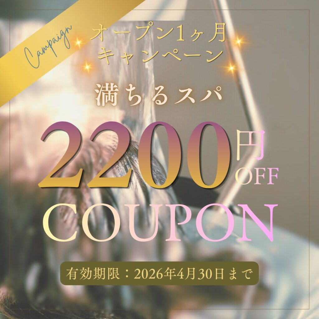 こちらはオープン1ヶ月を記念して、k-iの「一番人気の満ちるスパ」を特別価格にてのご案内となります!
