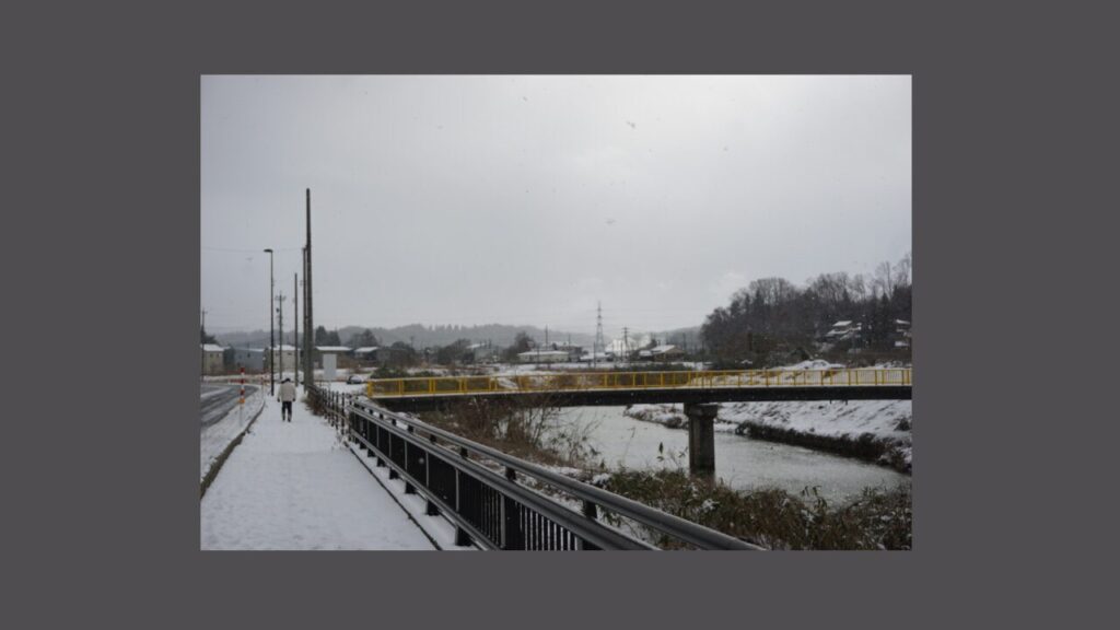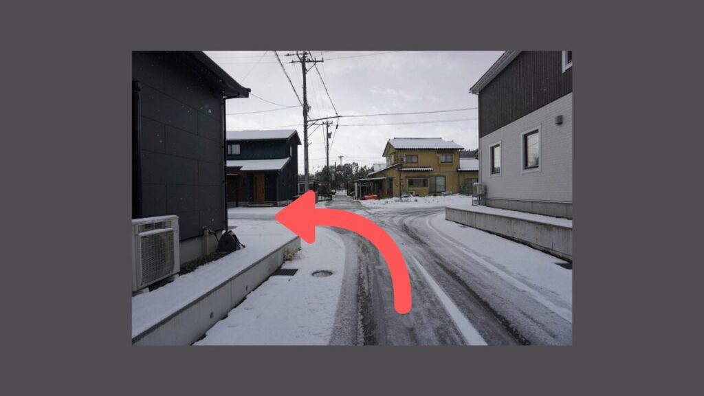 曲がったら、50メートル強ほど進んで右に曲がり「新興住宅地」に入ります
