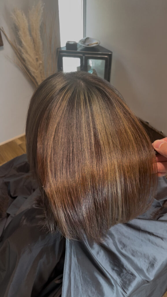 表面と顔まわりだけにブリーチを入れて、ダメージは最小限に、施術時間も短くできますので、お客様の負担は少なめです!